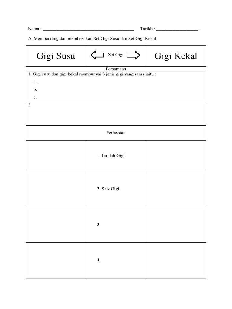 Viewlengkapkan Jadual Perbezaan Gigi Susu Dan Gigi Kekal Ciri Ciri Gigi Susu Gigi Kekal Jenis Gigi Bilangan Saiz Kekuatan Jangka Hayat Lengkapkan Jadual Perbezaan Gigi Susu Dan Gigi Kekal