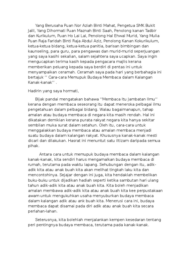 Bagi Satu Ceramah Bagaimana Meningkatkan Budaya Membaca Dalam