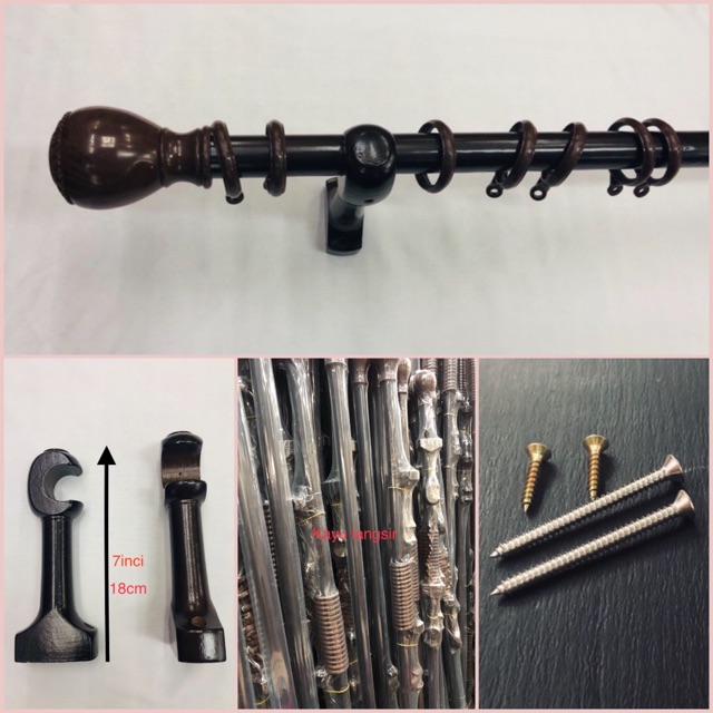 Curtain Wonden Rod Kayu Langsir Complete Set Shopee Malaysia