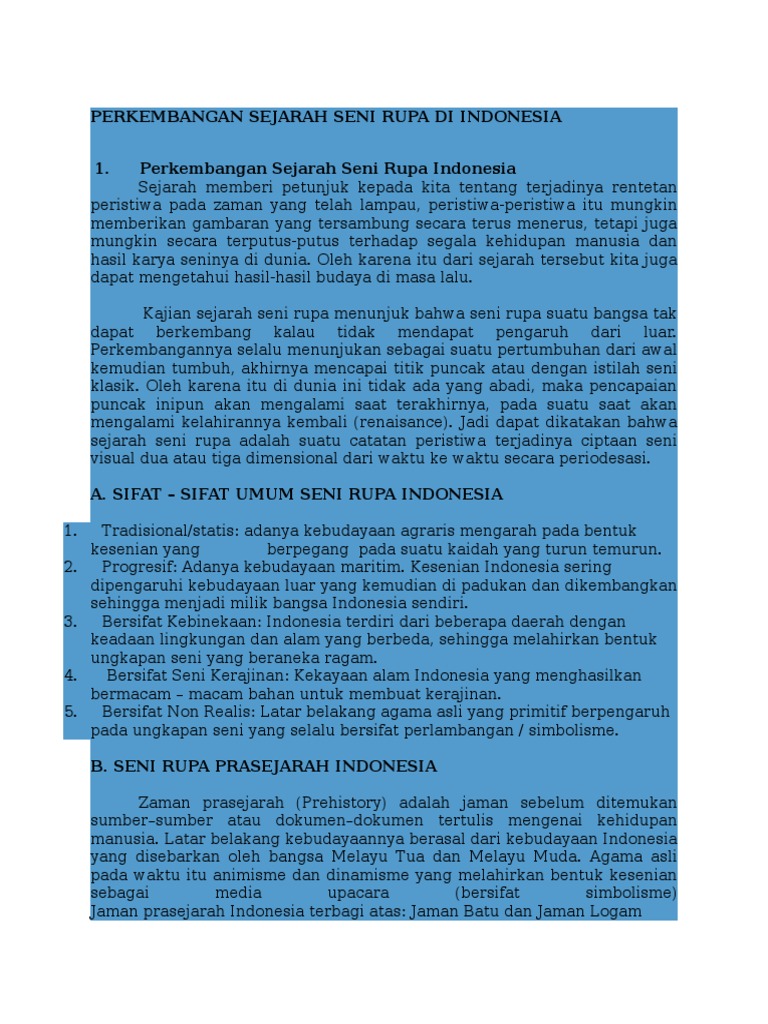 Perkembangan Sejarah Seni Rupa Di Indonesia Docx
