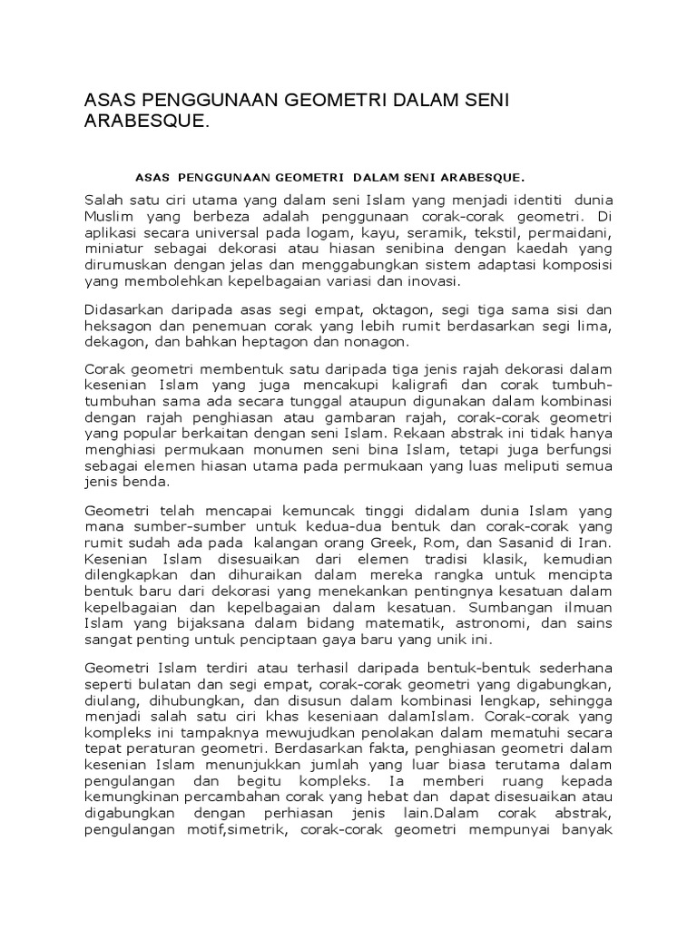 Asas Penggunaan Geometri Dalam Seni Arabesque