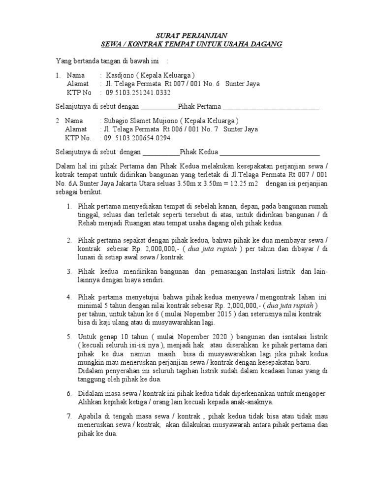 Hasil Gambar Untuk Surat Perjanjian Sewa Tempat Usaha Cv Kreatif Surat Tanah