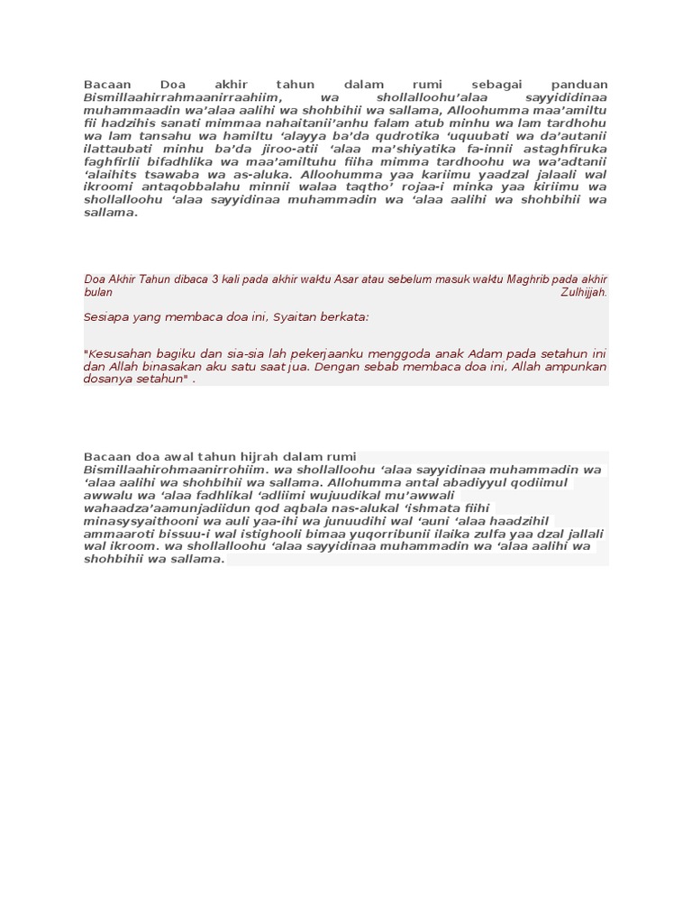 Bacaan Doa Akhir Tahun Dalam Rumi Sebagai Panduan