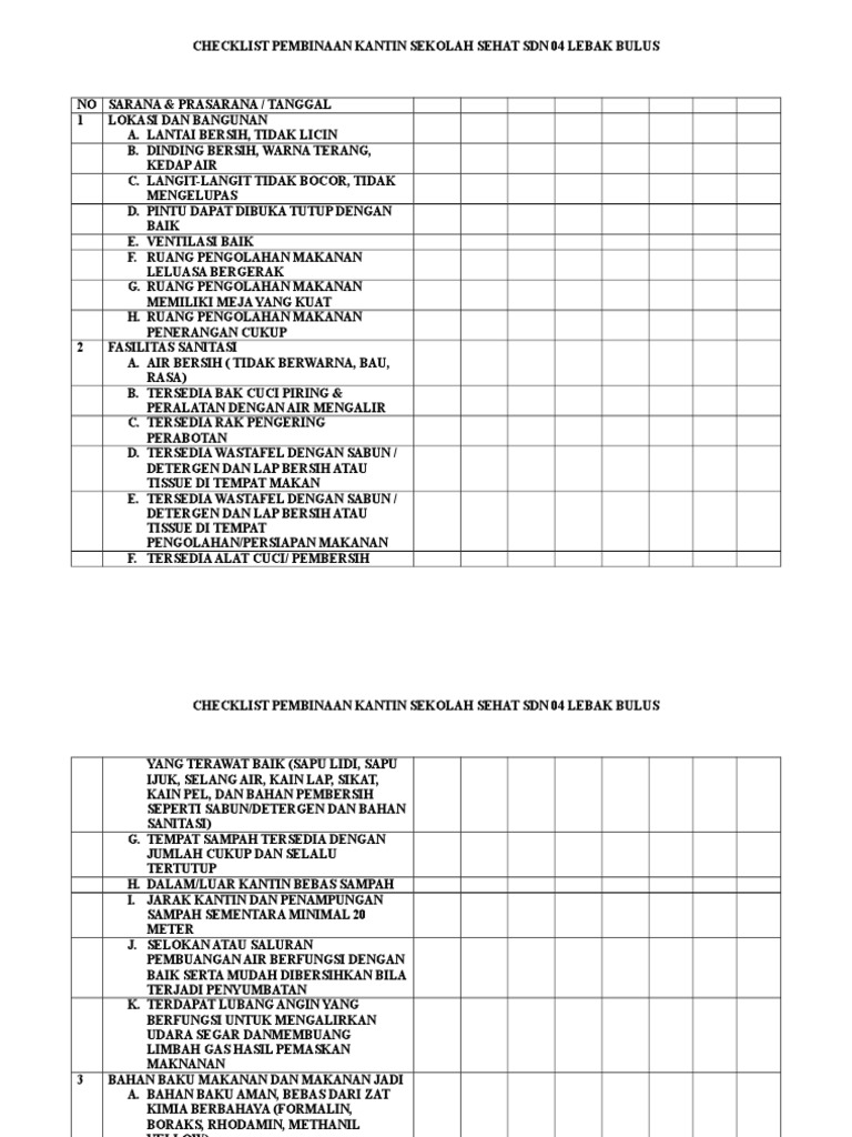 Checklist Kantin Sehat Sekolah Edit