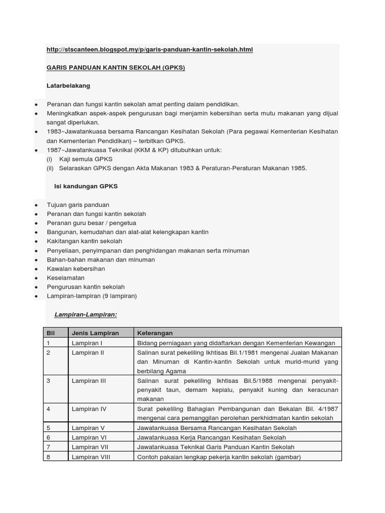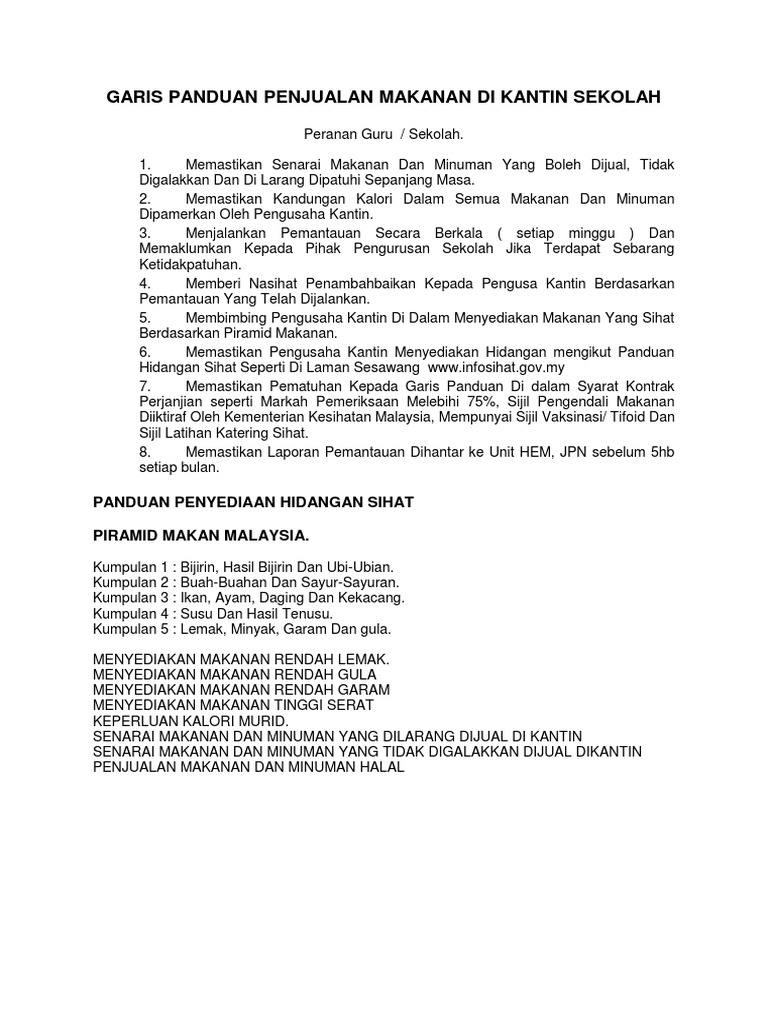 Garis Panduan Penjualan Makanan Di Kantin Sekolah