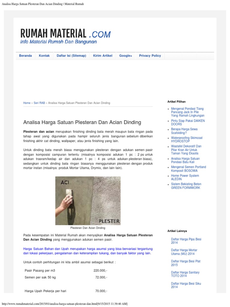 Analisa Harga Satuan Plesteran Dan Acian Dinding Rumah Material