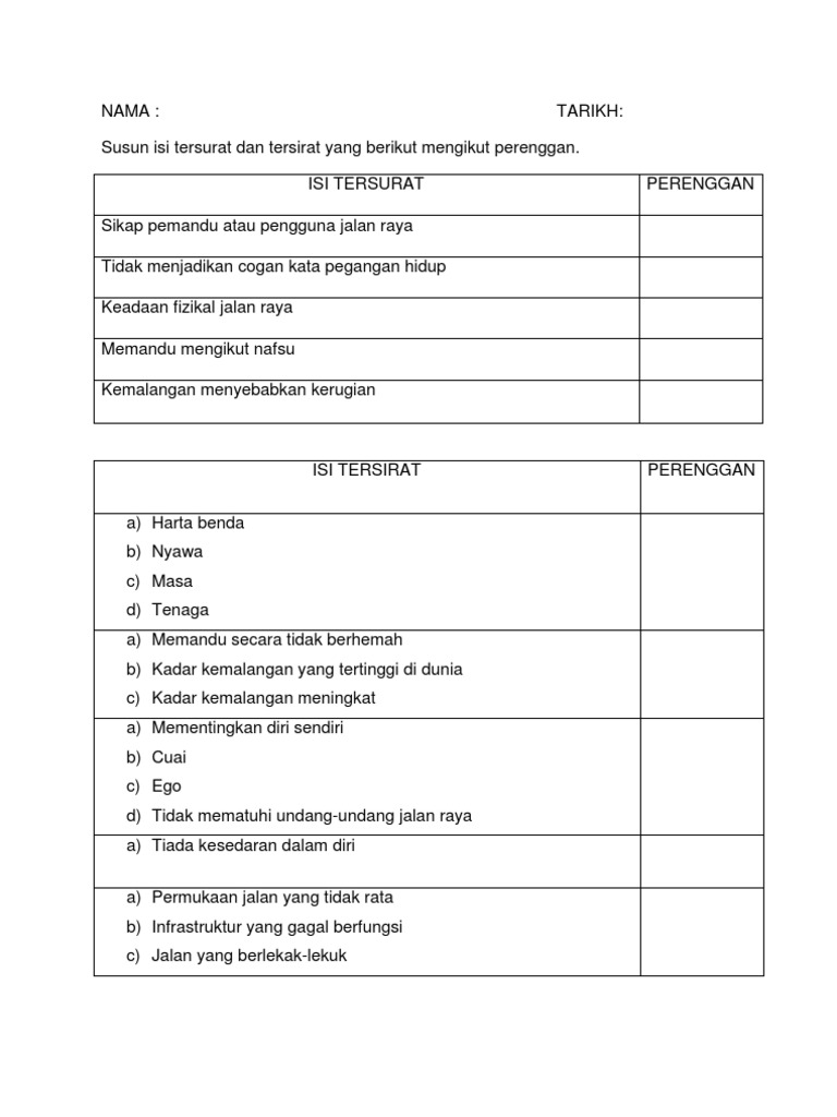 Isi Tersurat Dan Tersirat Tahun 5