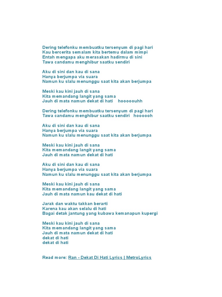 Lirik Lagu Dekat Di Hati By Ran Jauh Di Mata Namun Dekat Di Hati Semua Halaman Sonora Id