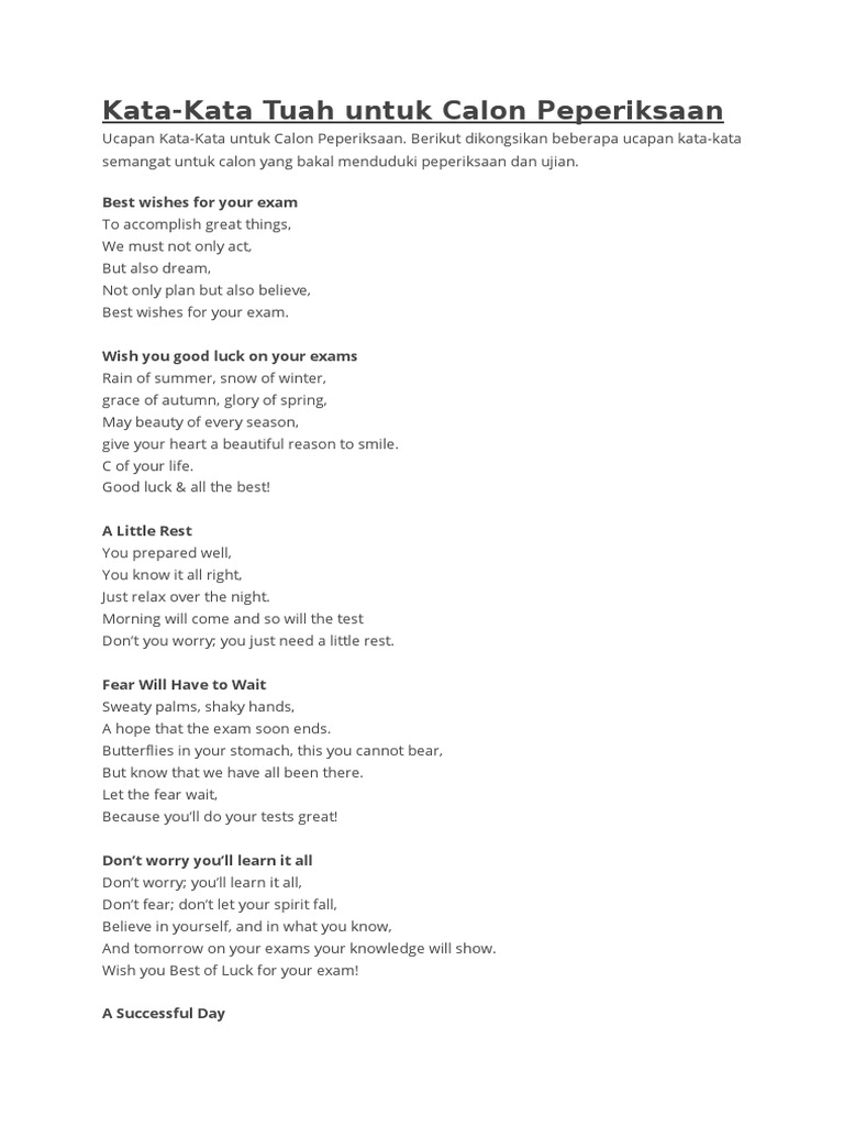 Kata Kata Tuah Untuk Calon Peperiksaan Good Day Wishes Day