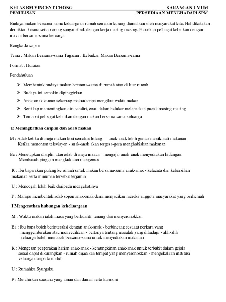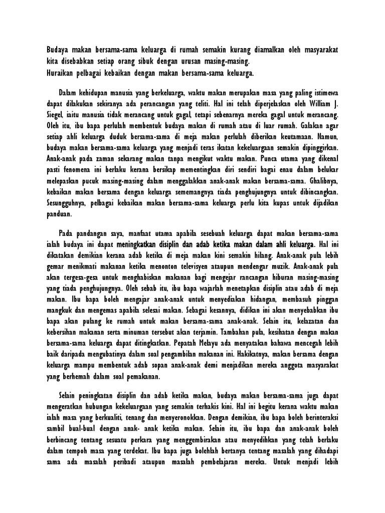 Karangan Umum Kebaikan Makan Bersama Keluarga Spm Docx Docx