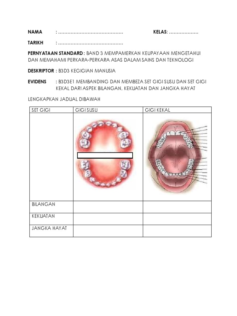 Viewlengkapkan Jadual Perbezaan Gigi Susu Dan Gigi Kekal Ciri Ciri Gigi Susu Gigi Kekal Jenis Gigi Bilangan Saiz Kekuatan Jangka Hayat Lengkapkan Jadual Perbezaan Gigi Susu Dan Gigi Kekal