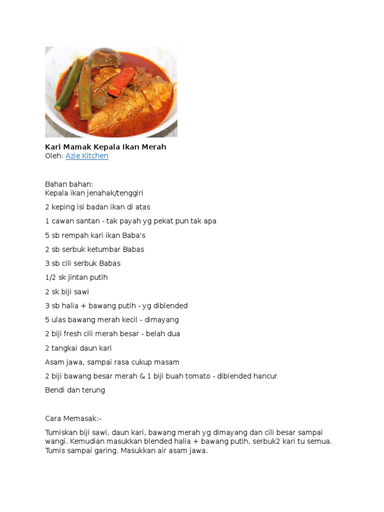Azie Kitchen Kari Mamak Kepala Ikan Merah Resep Masakan Cina Makanan Mudah Makanan